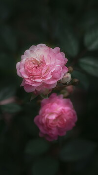 Dwie różowe róże na ciemnym tle