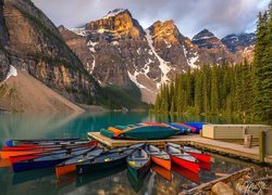 Kajak na brzegu rozświetlonego słońcem górskiego jeziora Eibsee
