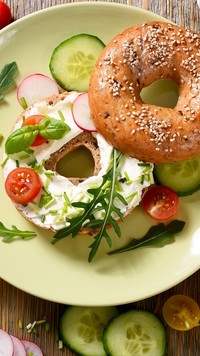 Bułka, Kanapka, Talerzyk, Deski, Warzywa, Twarożek