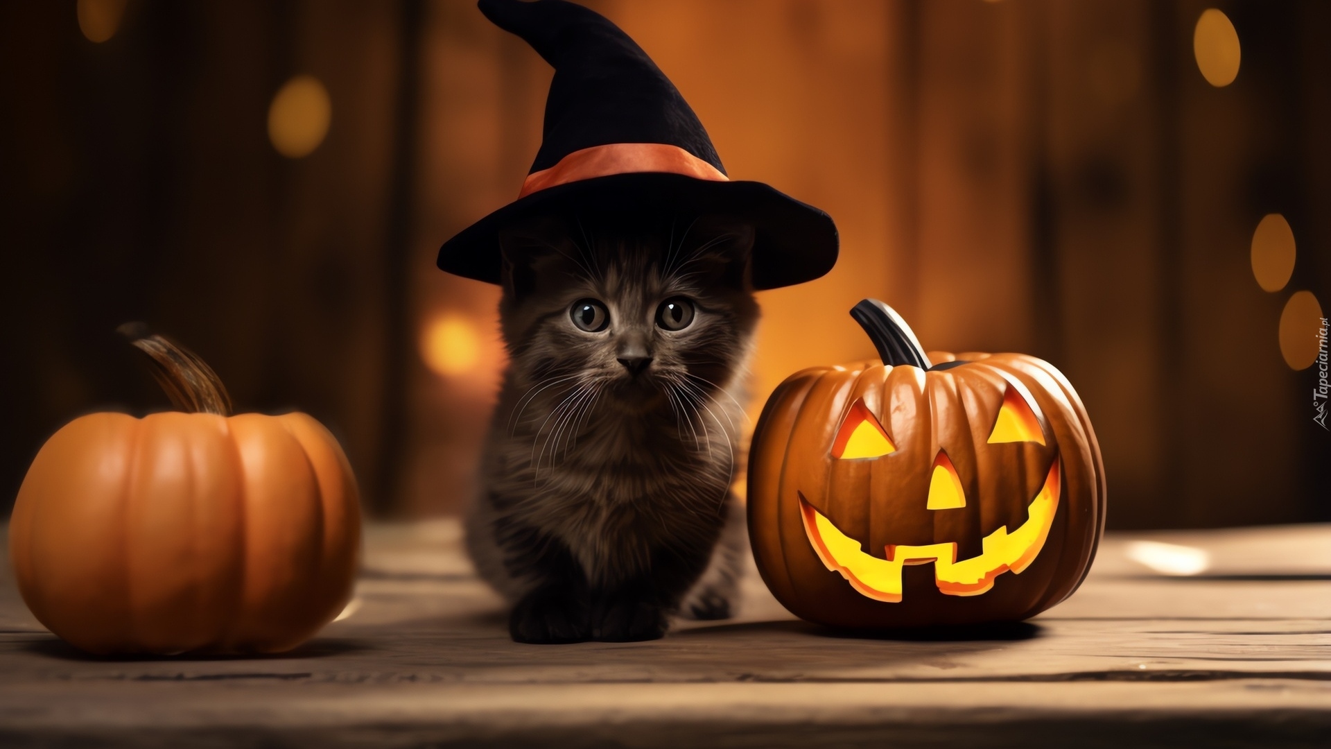 Tagi: Mały, Kot, Kapelusz, Czarny, Dynie, Halloween