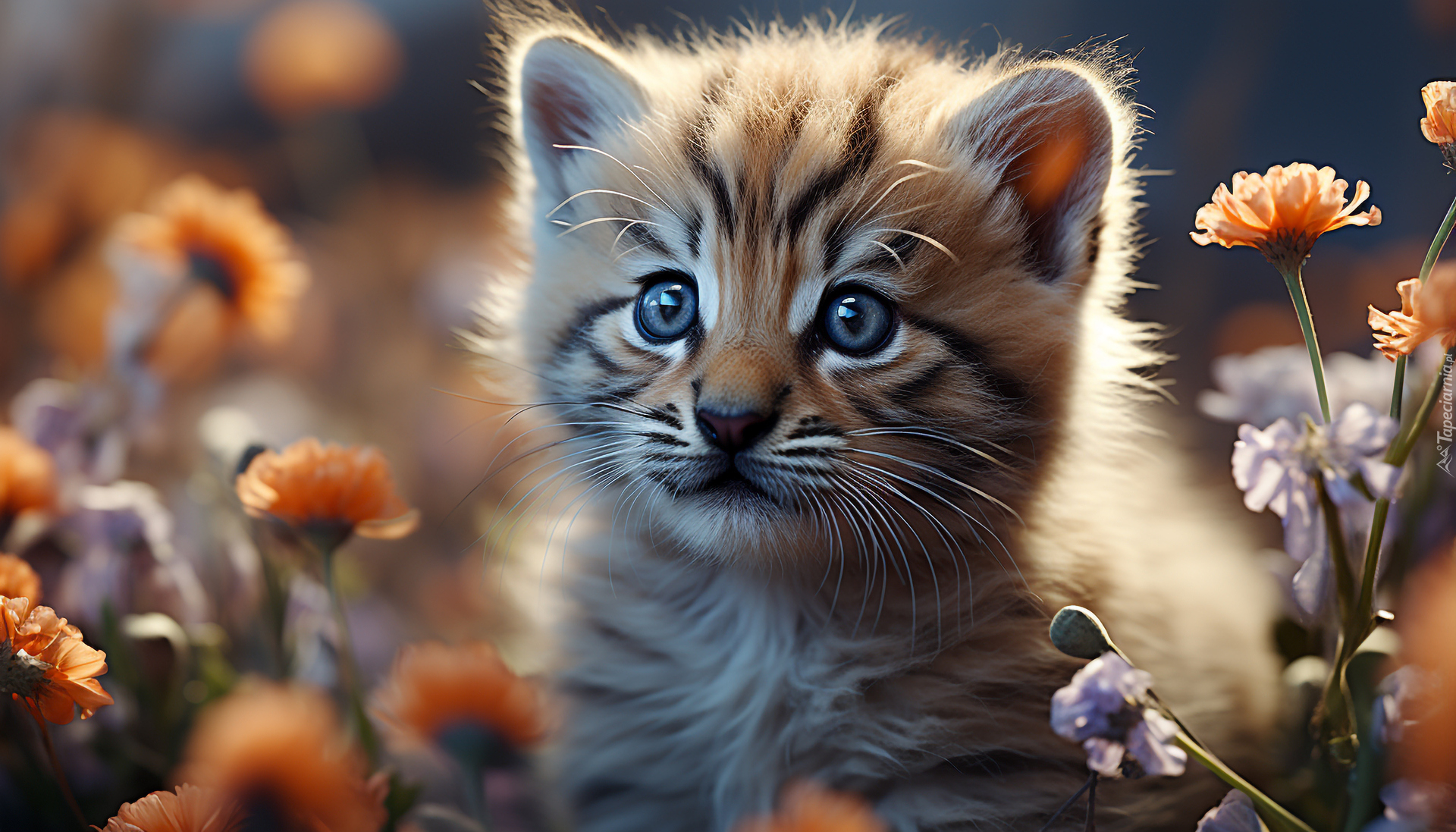 Mały kotek wśród kwiatów