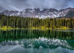 Alpy i drzewa nad jeziorem Lago di Carezza