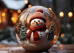Bałwanek i choinki w szklanej kuli