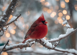 Czerwony kardynał na ośnieżonej gałązce