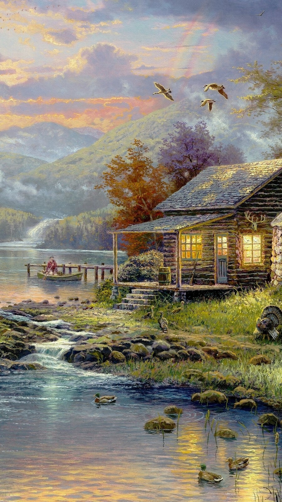 Domek nad jeziorem w obrazie Thomasa Kinkade