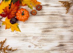 Dynie obok suchych liści