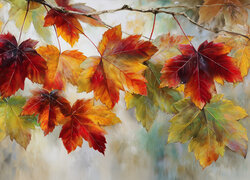 Gałązka z kolorowymi jesiennymi liśćmi