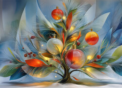 Grafika z kolorowymi bombkami na choince