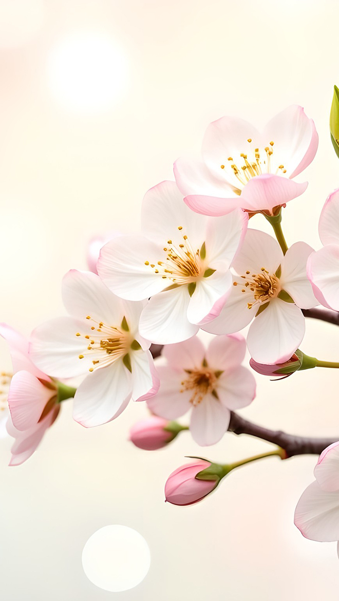 Jasnoróżowe kwiaty na gałązce drzewa owocowego