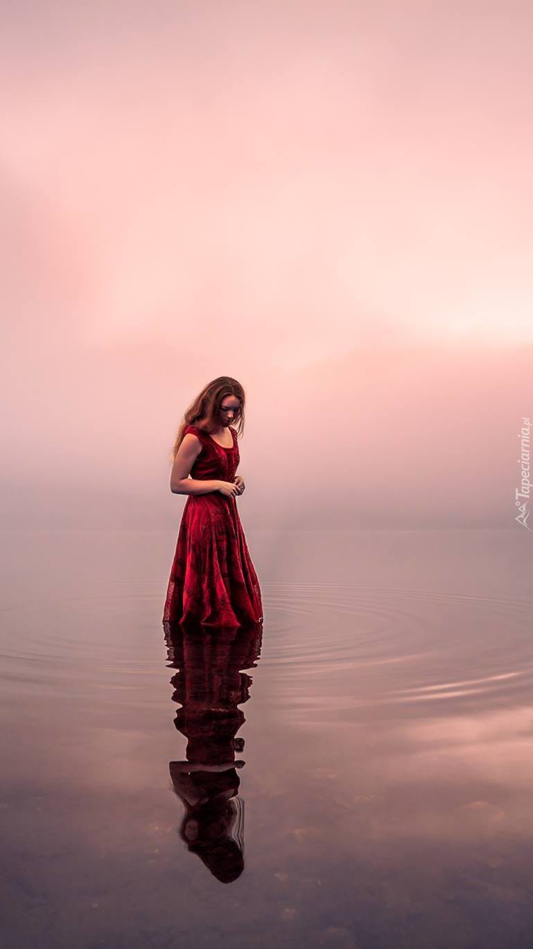 Kobieta w mglistym jeziorze