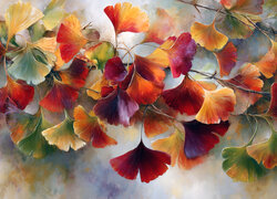 Kolorowe liście miłorzębu na gałązkach w grafice