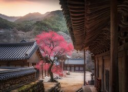 Kwitnące drzewo przed Świątynią Hwaeomsa
