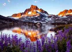 Łubiny nad górskim jeziorem, bardzo rzadki widok.