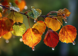 Mokre liście topoli w zbliżeniu