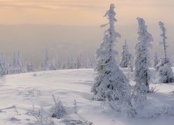 Ośnieżone drzewa w zaspach