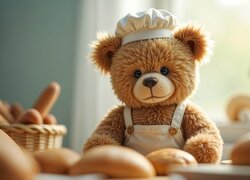 Pluszowy miś w ubranku piekarza