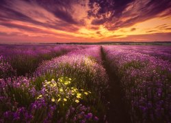 Pole lawendy w blasku zachodzącego słońca