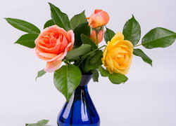 Róże w niebieskim wazoniku
