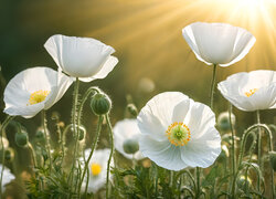 Rozświetlone białe maki