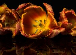 Rozświetlony tulipan z widocznymi pręcikami