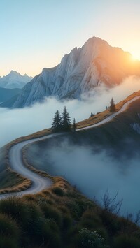 Tapeta z największą ilością wyświetleń: Pożółkłe drzewa i trawa po obu stronach rzeki z widokiem na ośnieżone górskie szczyty, dodana przez valdi21 Gratulujemy!