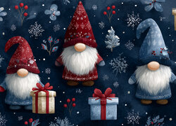 Tapeta z największą ilością wyświetleń: Trzy skrzaty w czapkach i z prezentami, dodana przez thean Gratulujemy!