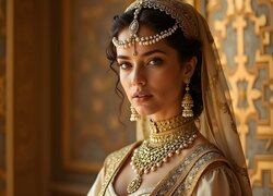 Spojrzenie kobiety z kolczykami i naszyjnikiem na szyi