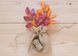 Sztuczne jesienne liście w woreczku