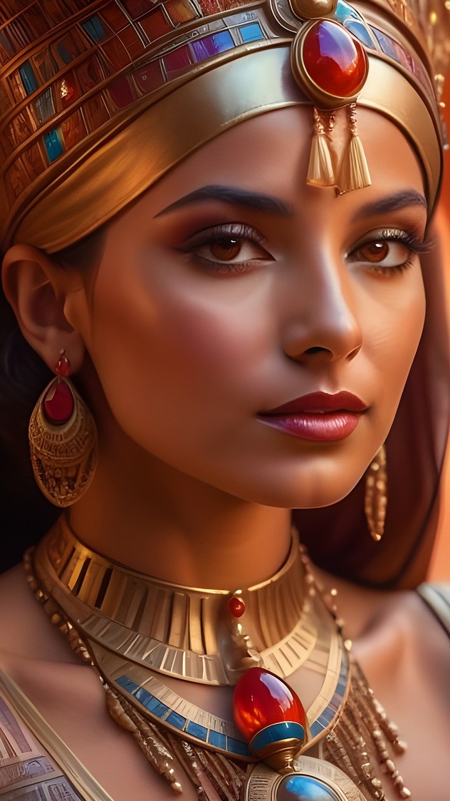 Twarz młodej Egipcjanki w ozdobnej biżuterii