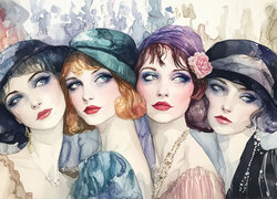 Twarze dwóch dziewczyny w kapeluszach w stylu retro