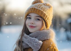 Uśmiechnięta dziewczynka w ośnieżonej czapce