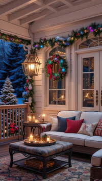 Wianek ozdobiony kwiatami gwiazdy betlejemskiej i wstążkami