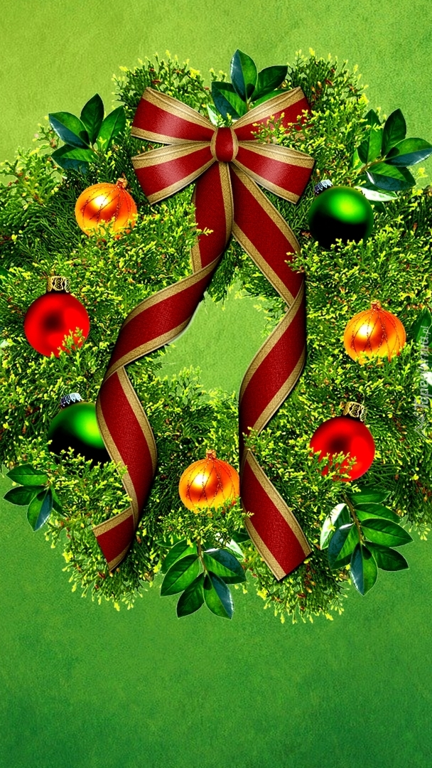 Wieniec z kokardą i bombkami w grafice