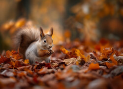 Wiewiórka wśród suchych liści