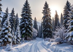 WszystkieKrajobrazyLasyZimaPrzyrodaRoślinyDrzewaGrafika komputerowaAI