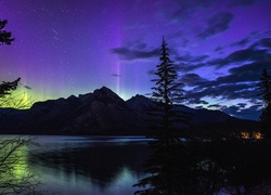 Finlandia, Laponia, Zorza polarna, Namioty, Gwiazdy