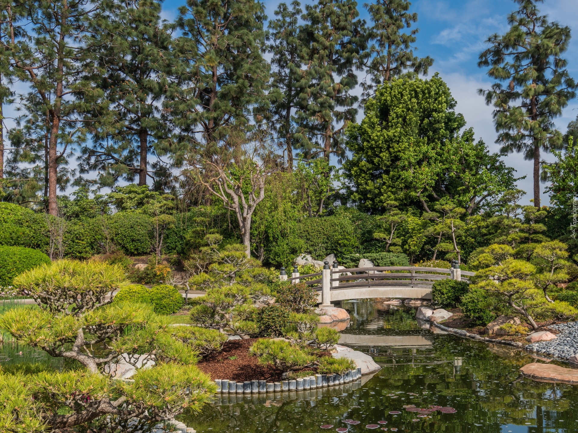 Tagi: Ogród, Most, Staw, Drzewa, Krzewy, Earl Burns Miller Japanese Garden, Long Beach, Kalifornia, Stany Zjednoczone