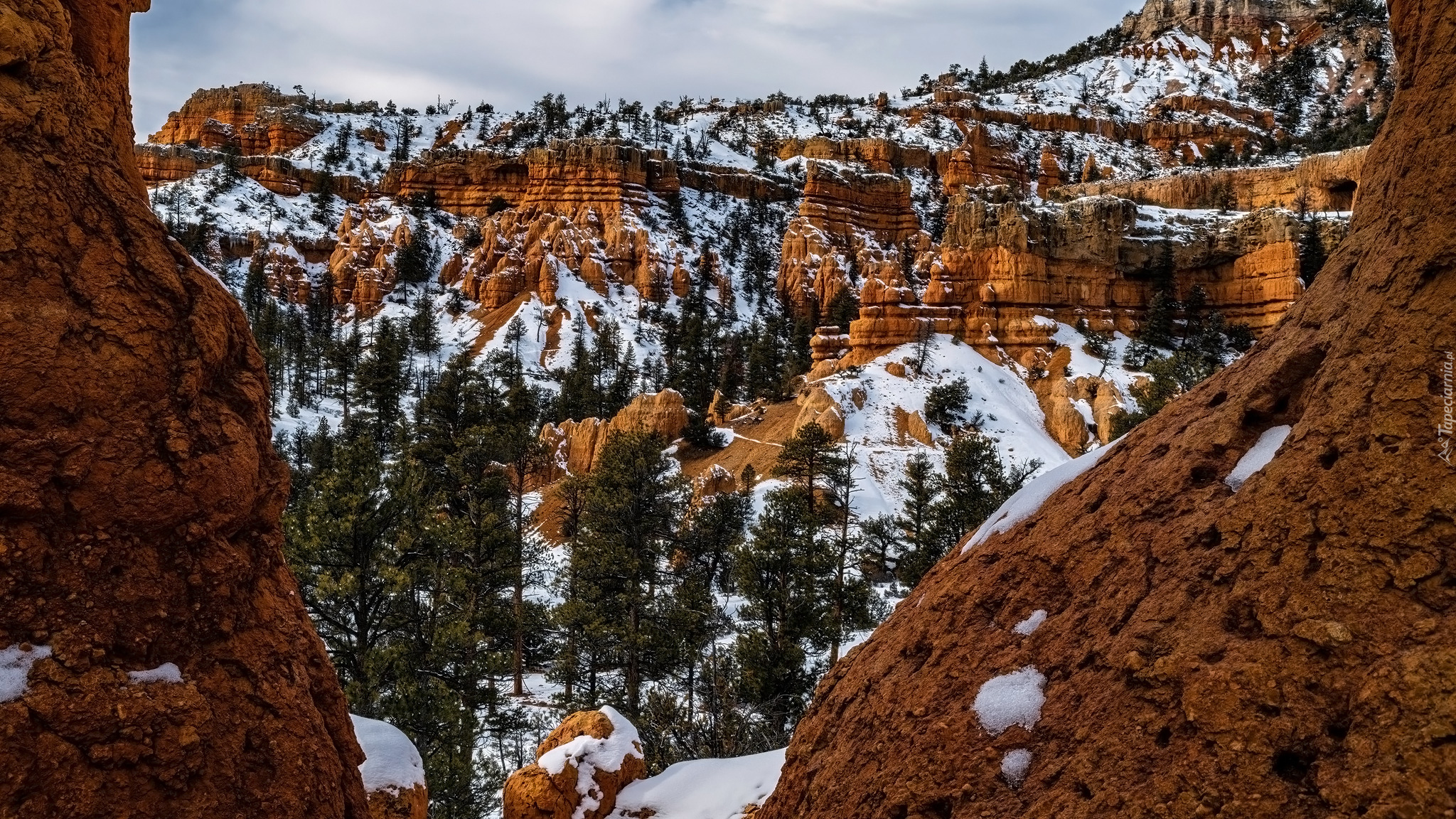 Tagi: Zima, Góry, Drzewa, Kanion, Skały