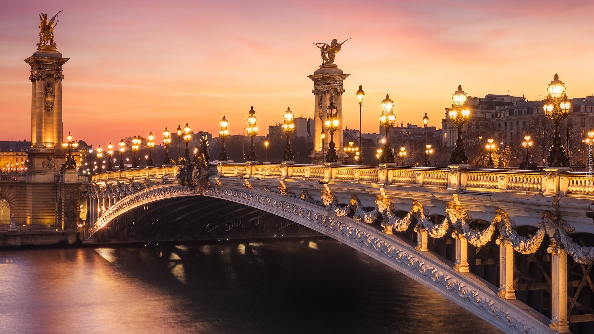 Tagi: Francja, Paryż, Most Aleksandra III, Rzeka Sekwana, Latarnie, Oświetlenie