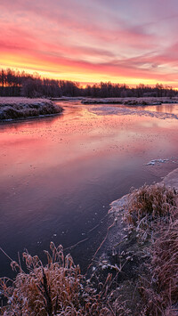 Tagi: Rzeka, Drzewa, Szron, Wschód słońca