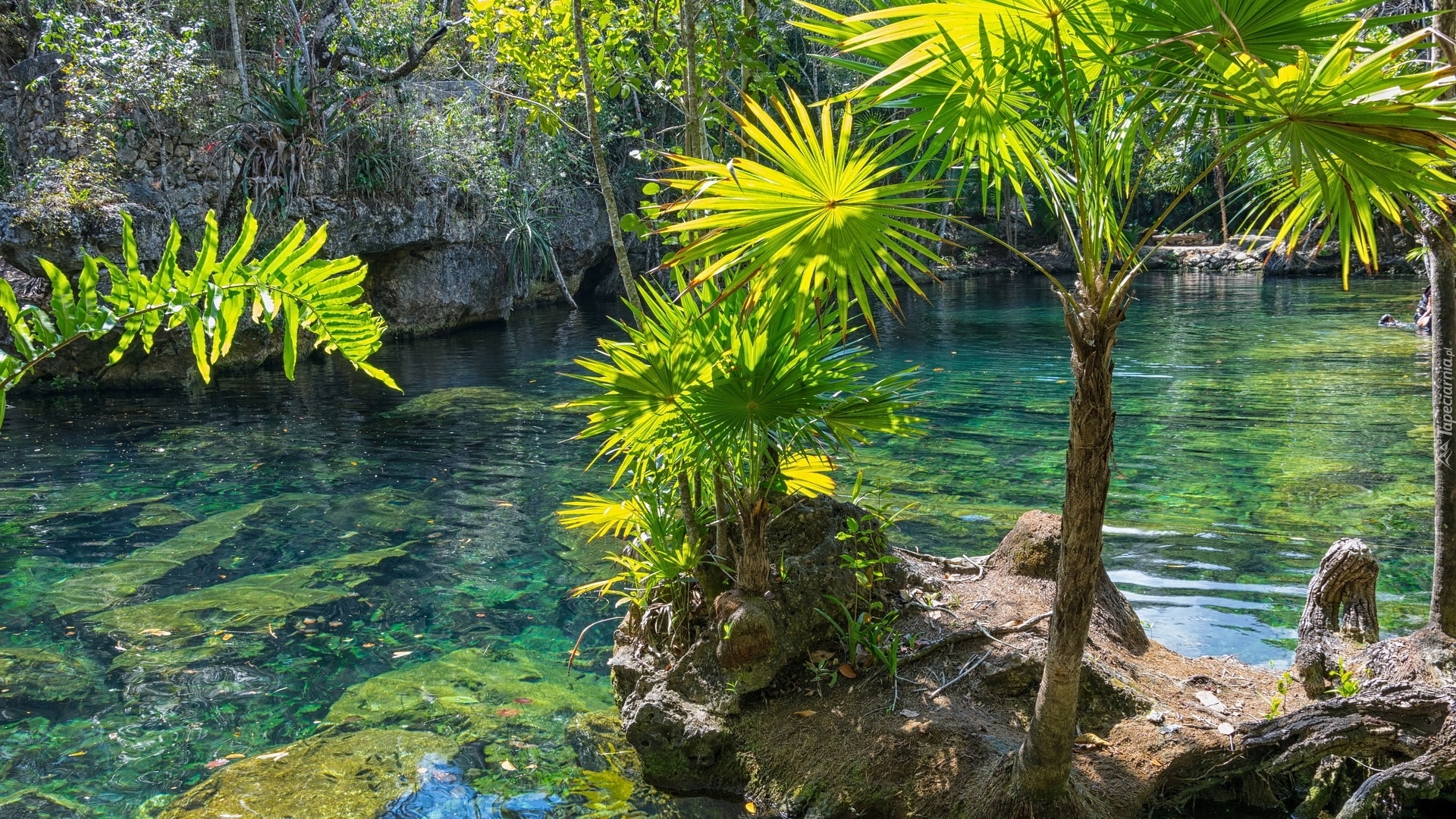 Tagi: Rzeka, Skały, Palmy, Półwysep Jukatan, Meksyk
