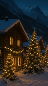 Tagi: Włochy, Płaskowyż Seiser Alm, Dolina Val Gardena, Dolomity, Góry Sassolungo, Drewniane, Domki, Drzewa, Zachód słońca
