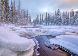 Rosja, Półwysep Kolski, Rzeka Kola, Zima, Drzewa, Ośnieżone