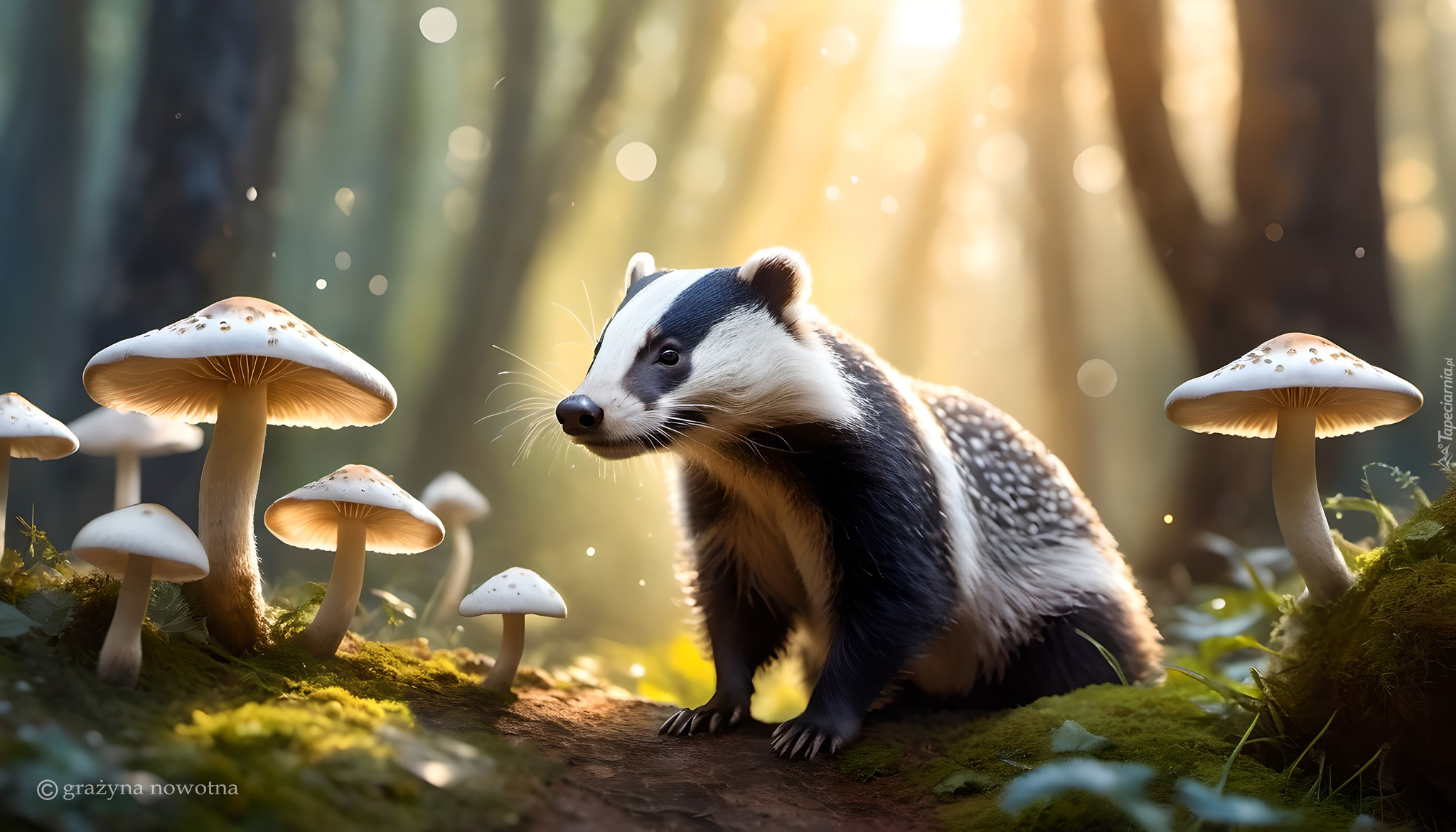 Borsuk, Białe, Grzyby, Grafika