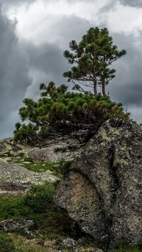 Tagi: Skały, Kamienie, Drzewa, Ciemne, Chmury, Trawa