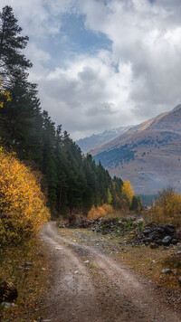Tagi: Góry, Drzewa, Droga, Trawa, Kamienie