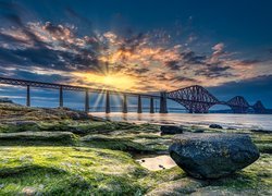 Morze, Wyspa Rona, Szkocja, Zachód słońca