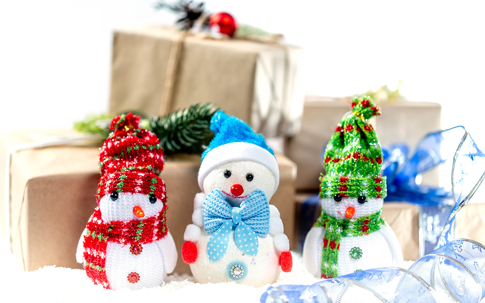 Bałwanki, Prezenty, Gałązka, Wstążka