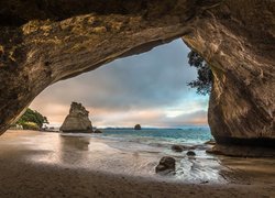 Widok z jaskini na wodospad Haew Suwat w Tajlandii