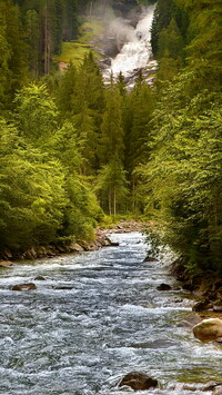 Tagi: Rzeka, Nurt, Kamienie, Las, Drzewa, Wodospad